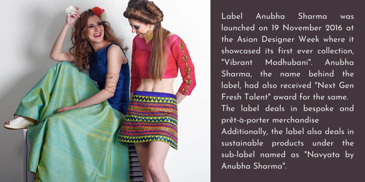After successfully completing her education and internships, she worked for six-months at Mindworks Global Media Pvt. Ltd. as a Fashion Editor. After that, she got an offer to participate in Asian Designer Week under NextGen Fresh Talent category and the journey of her label started just then. She launched the label with her Vibrant Madhubani collection and also bagged the “NextGen Fresh Talent” title for the same.